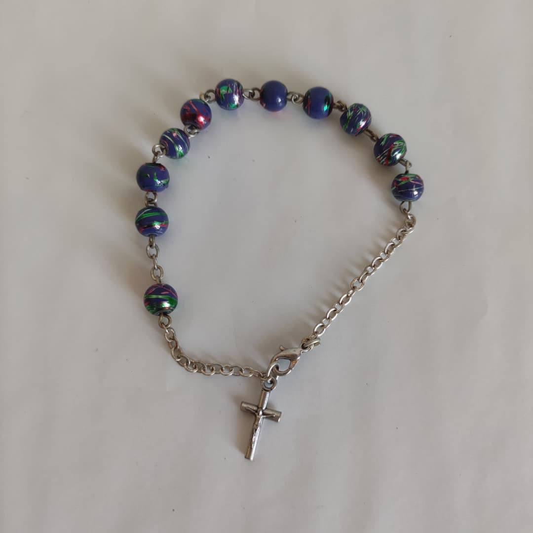 BRACCIALETTO CON GANCIO E PERLINE IN RESINA MELANGE BLU VIOLA